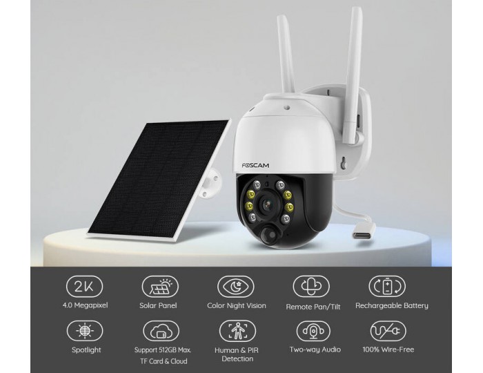• Foscam B4 2K Solar Battery WiFi Security Camera Outdoor PTZ Wire-Free