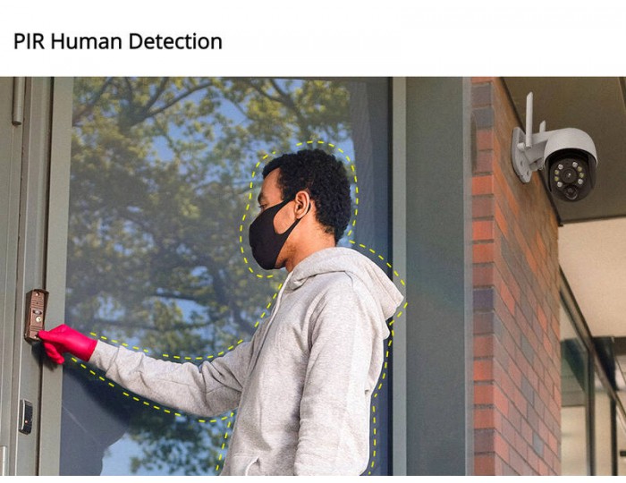 PIR HUMAN DETECTION – Integrated PIR sensor helps detect human movement and reduce false alerts caused by rain, insects or moving branches.