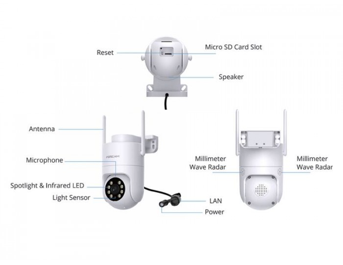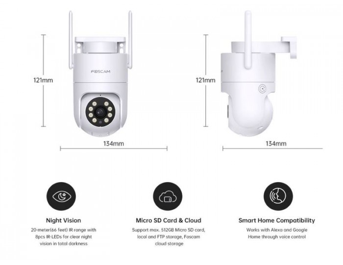 MULTIPLE STORAGE OPTIONS – Supports MicroSD card recording (max 512GB), NVR, FTP server and optional Foscam Cloud storage.