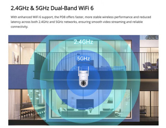 MILLIMETER-WAVE RADAR WITH 360° AUTO TRACKING – Traditional cameras only detect motion within the lens view. The PD8 integrates millimeter-wave radar to detect movement beyond the camera’s field of view. When activity is detected the camera automatically turns toward the target and begins real-time 360° human tracking.