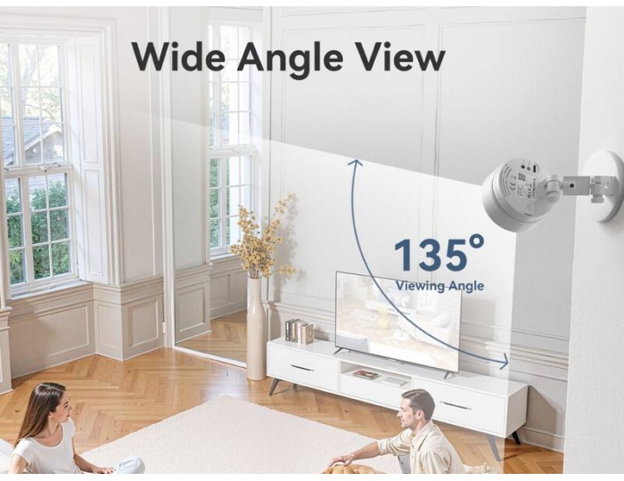 WIDE VIEWING ANGLE – 135° diagonal viewing angle covers more area with fewer blind spots. The camera head can be manually adjusted (horizontal 360° / vertical 310°) for flexible positioning.